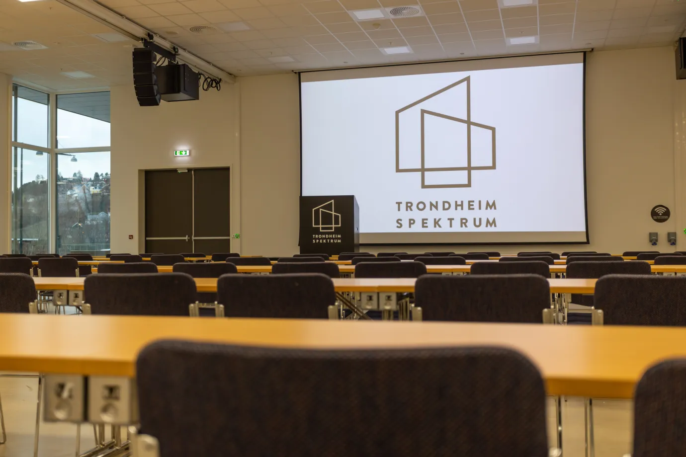 Konferansesalen i Trondheim Spektrum er på 400 kvm, og kan benyttes til mange ulike typer arrangement